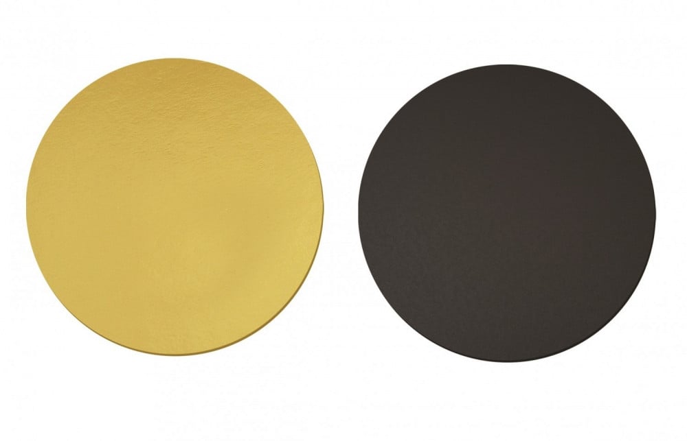 بألوان ذهبية وأسود، تضفي هذه القواعد مظهراً أنيقاً وتناسب جميع أنواع الكيك، بما في ذلك التشيز كيك والكيكات الصغيرة.