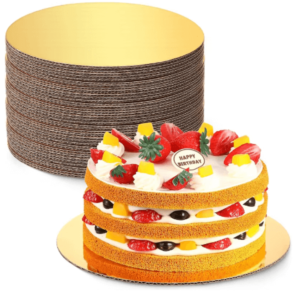 أضف رونقاً خاصاً إلى تقديم الحلويات والكيك باستخدام قواعد كيك ذهبية دائرية مصنوعة من ورق مقوى مضغوط بعدة طبقات. تتميز هذه القواعد بالمتانة والدعم الفائق، ما يجعلها الخيار المثالي لـمحلات الحلى والكيك ولتقديم الطلبات في المناسبات الفاخرة مثل الحفلات والزواجات.