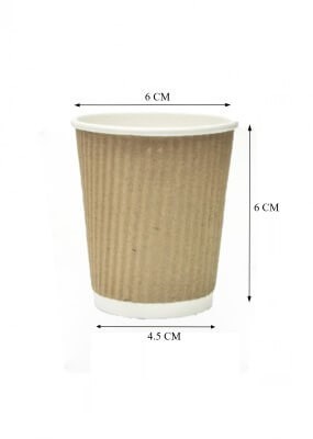 أكواب ورقية بدون اغطية مناسبة للمقاهي والمطاعم تحتوي علي ثلاث طبقات متتالية لمنع التسريب مع طبقة خارجية مموجة تمنع من سقوط الكاس من اليد اثناء حمله وتحافظ علي حرارة الكاس وغير قابلة للتسريب