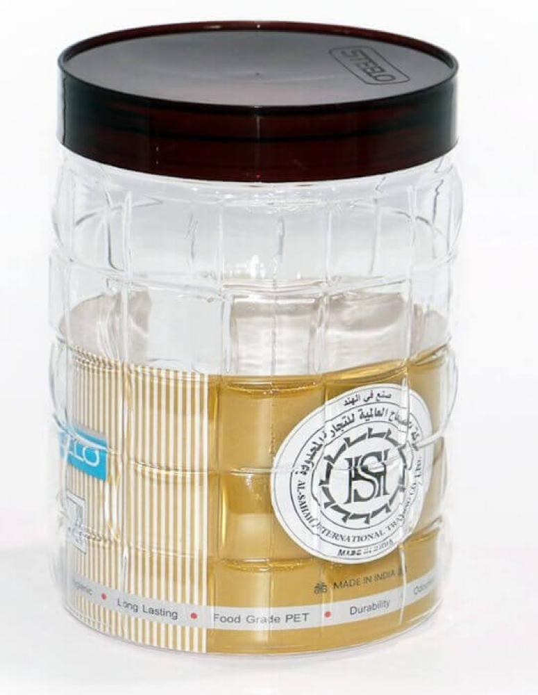 علب بلاستيك شفافة للتوابل والمكسرات والسوائل مثل العسل مانعة للتسرب لاحتوائها علي غطاء محكم الاغلاق .