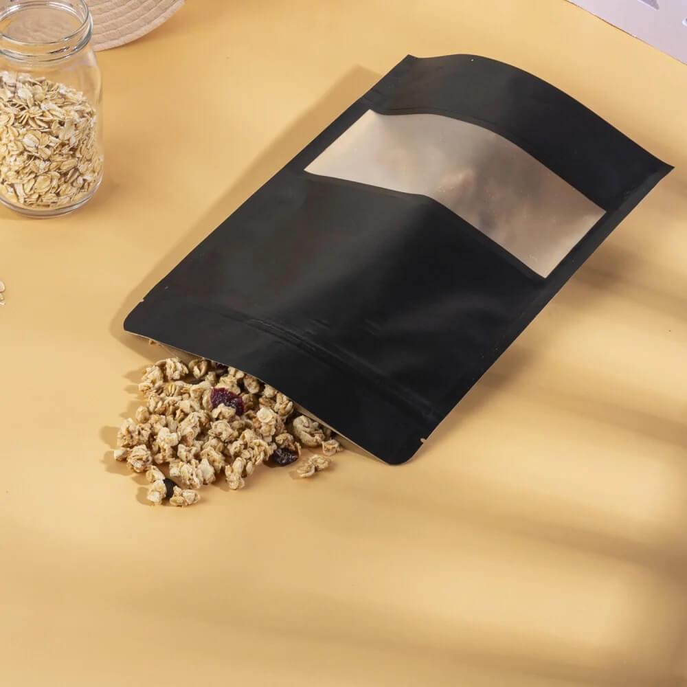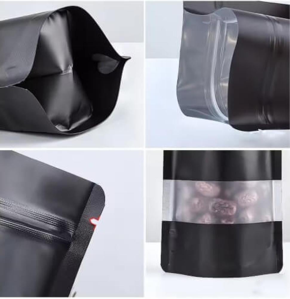 كيس ورق لتعبئة وحفظ القهوة والبهارات لون أسود بنافذة شفافة - 500 جرام / 50 كيس