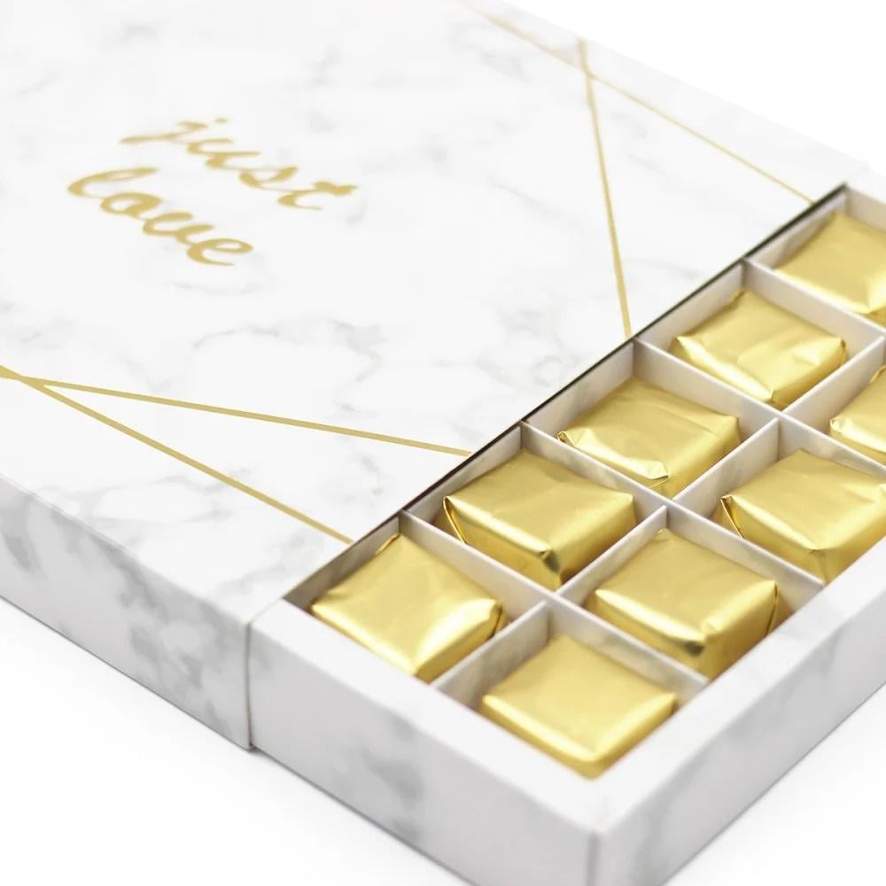 علب ورقية بتصميم رخامي مع فواصل داخلية – مثالية لتغليف الحلويات والمعمول