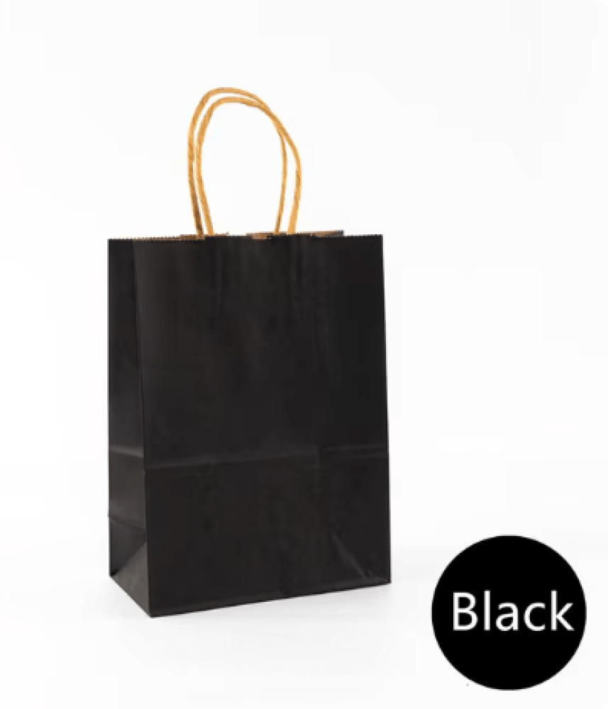 مجموعة مكونة من 12 كيس ورقي أسود متين مثالي لاستخدامات متعددة مثل تعبئة الطعام، البقالة، زجاجات المشروبات، أو منتجات البيع بالتجزئة. تم تصميم أكياس ورقية هذه بمقابض من حبال مجدلة تسهل عملية الحمل والتنقل، كما تتميز بقاعدة صلبة توفر استقرارًا أكبر وتقلل من خطر التمزق أو التشقق حتى عند حمل الأغراض الثقيلة.