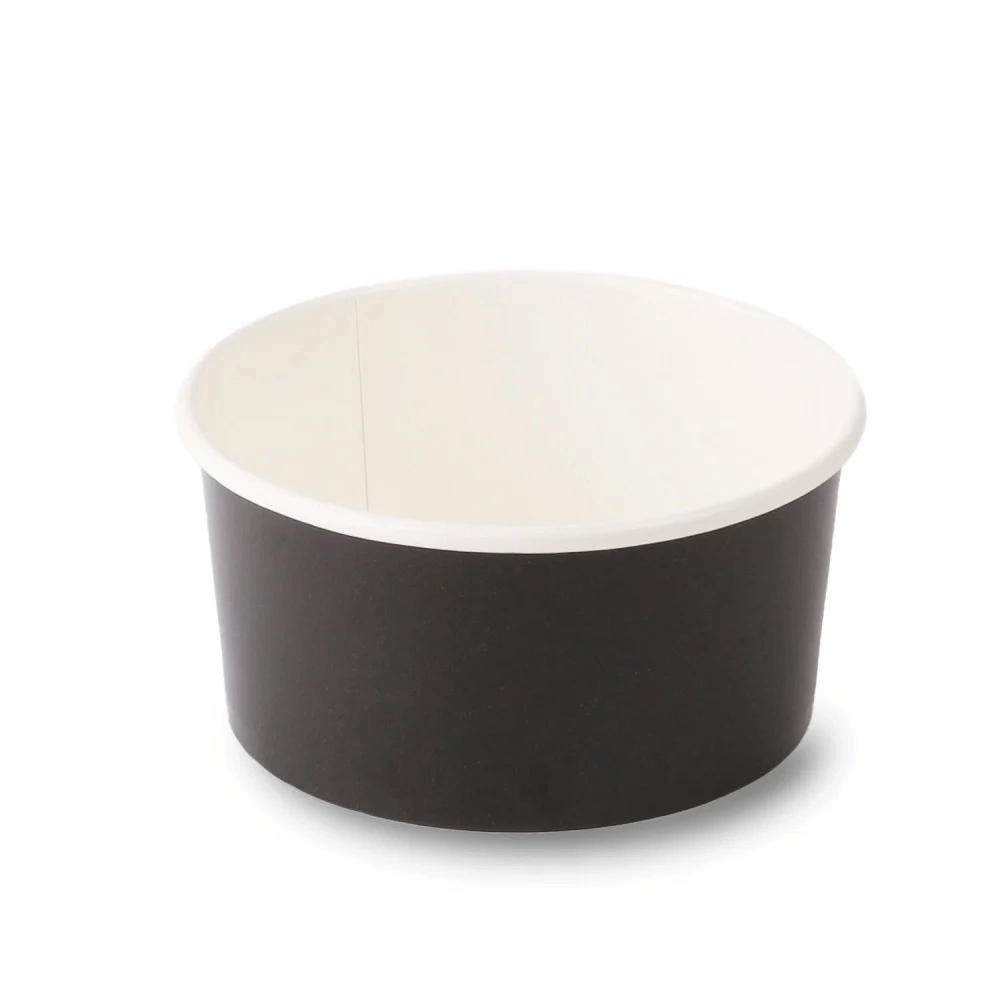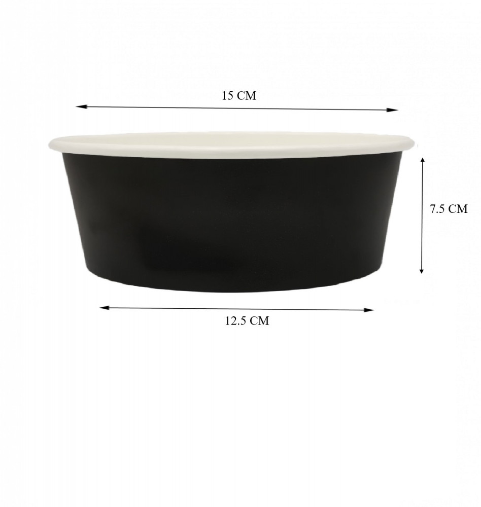 زبدية ورقية دائرية باللون الأسود الفاخر، مصممة لتعبئة وحفظ الأطعمة الطازجة، الحساء، والوجبات الكبيرة. مثالية للاستخدام في المطاعم والمنازل، وللتنزه في العطلات أو الاستمتاع بوجبة غداء عملية في العمل.