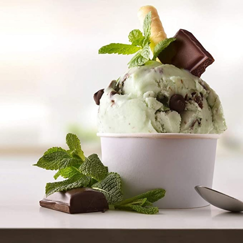 -الاكواب الورقية المستديرة مناسبة لحفظ الآيس كريم الفانيلا والنكهات الاخرى، يمكن استخدامها في متاجر الحلويات، المطاعم، المخبوزات، شاحنات الطعام أو حاملات الطعام، إلخ. كما أنه رائع لحفلات الزفاف وحفلات التخرج والنزهات وحفلات الشواء.